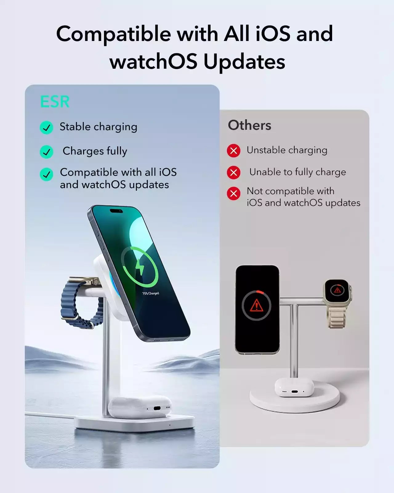 Compatibility: Only for iPhone 12 series or later, AirPods 3/2/Pro, Apple Watch (all series), official MagSafe cases, ESR magnetic cases, and ESR Universal Rings
