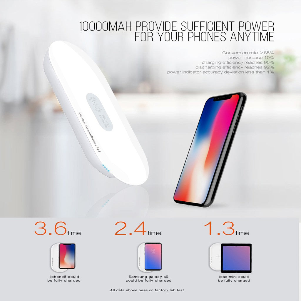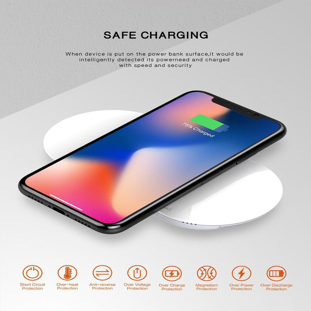 3. Power bank has built in wireless QI protocol matches wireless charging standard. QI is a technology of electromagnetic induction, enable power bank to wireless charge phones, tablets and other devices also with QI Protocol.