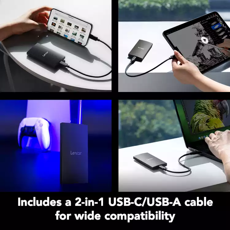 a 2-in-1 USB-C/USB-A cable ensures that the drive is compatible with your PC, Mac, tablet, smartphone, and more.