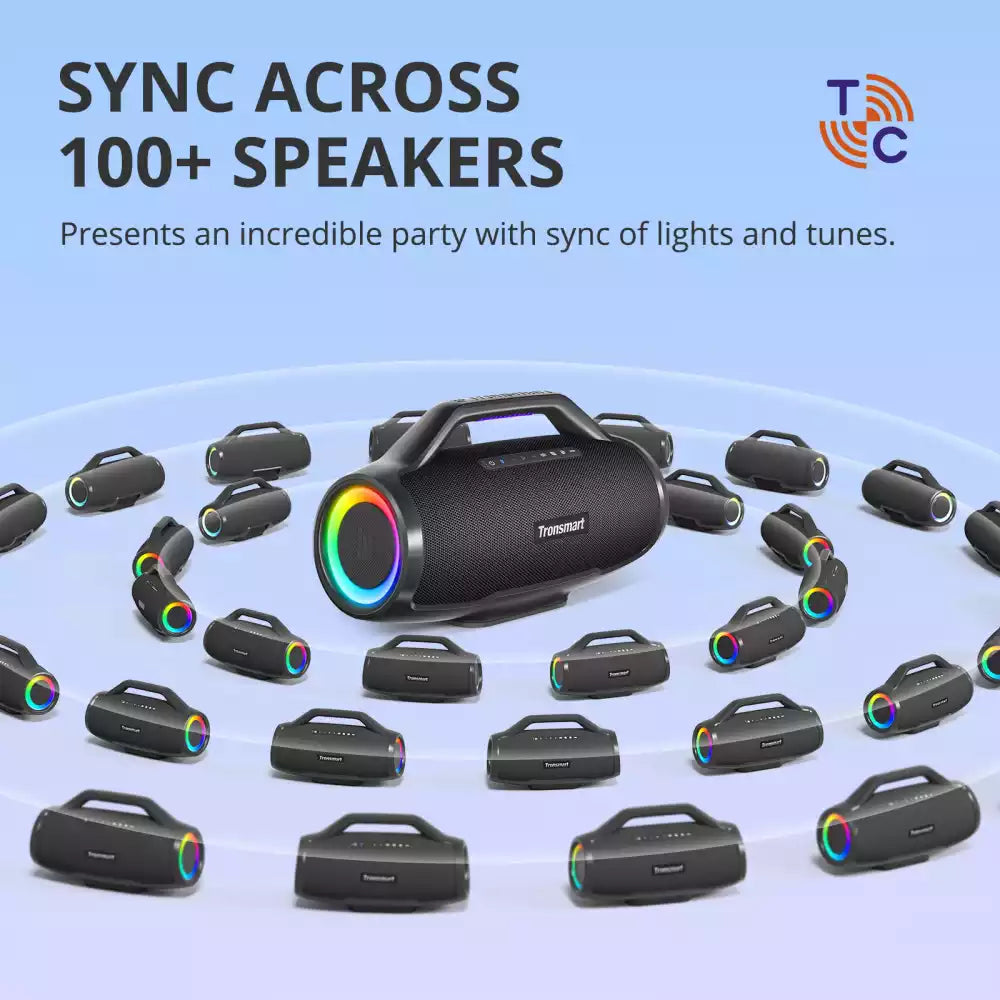 Tailor Your Sound: Personalize EQ modes, choose light show, next song and control TuneConn via Tronsmart App.