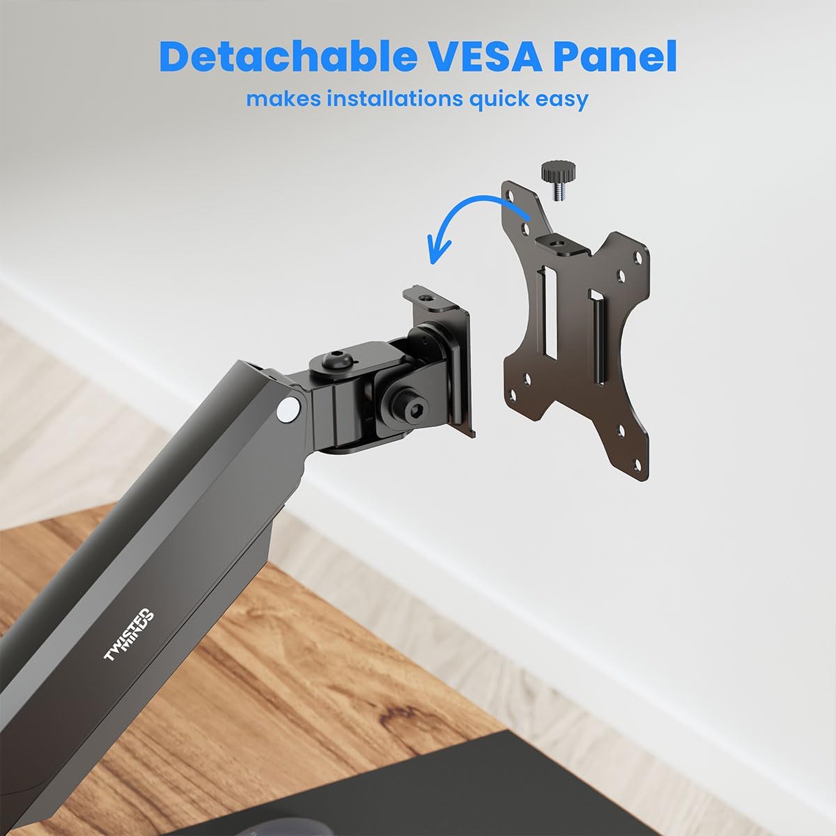 Quick Install VESA Plate: Compatible with 75x75mm and 100x100mm VESA patterns and features a quick-release design for fast setup or swaps.