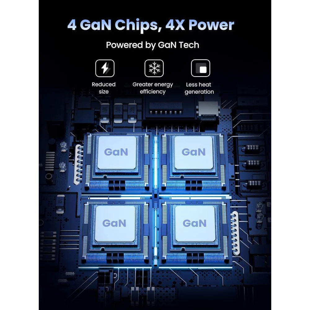 GaN and SiC Chips: Improves heat dissipation and energy conversion efficiency.
