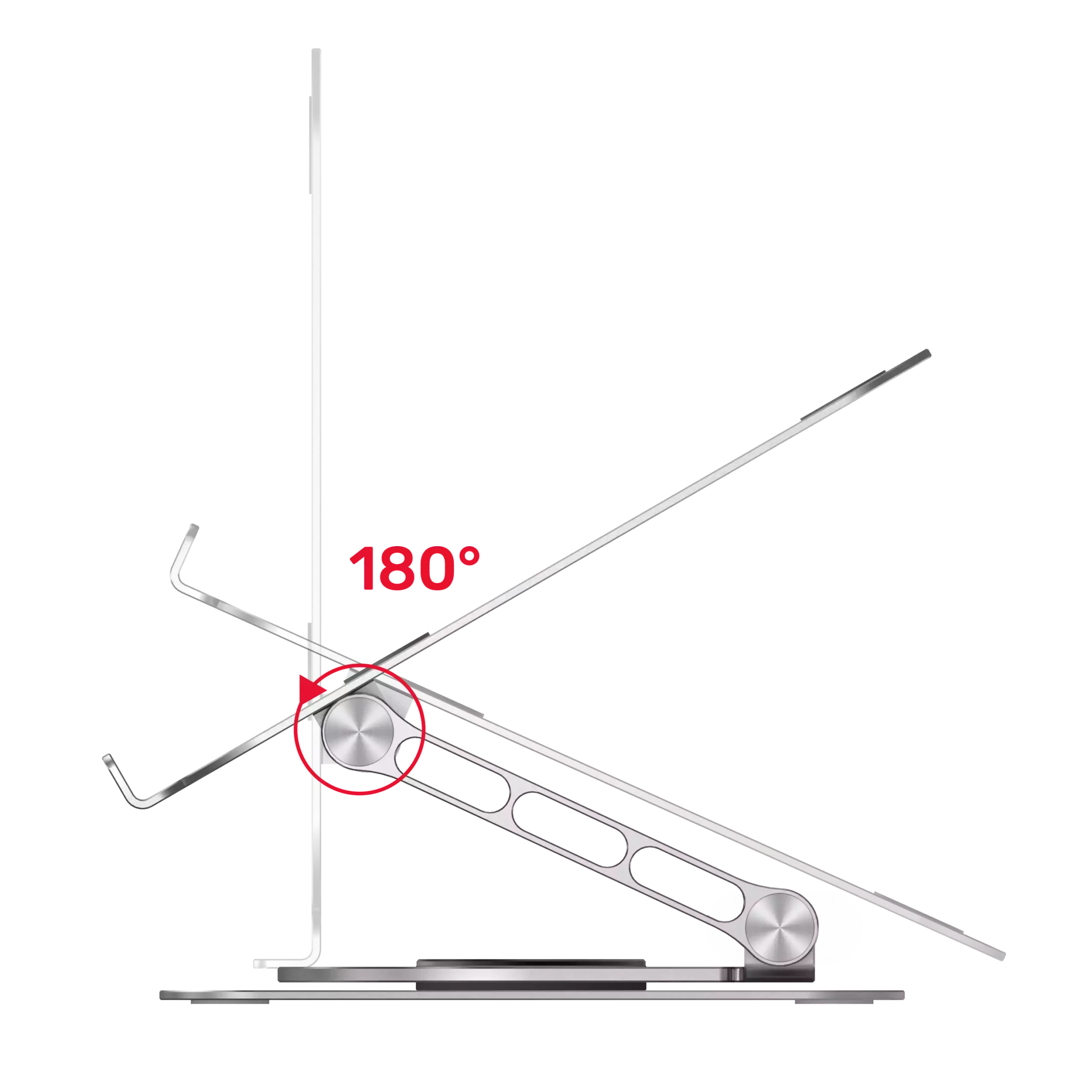Enhance the productivity with two screens, our 360° laptop stand can raise your laptop to a similar height with your external monitor and make multitasking more accessible as it supports dual screen viewing simultaneously.